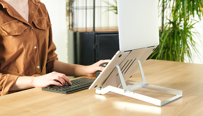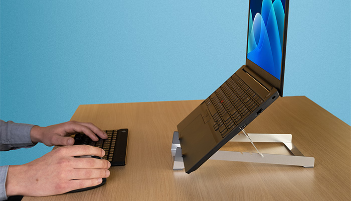 R-Go Riser Basic ergonomische laptopstandaard voor ergonomisch werken, in 3 standen verstelbaar, zilver.